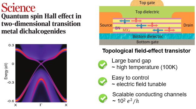 - Predicted that quantum spin Hall effect could be realized in WTe2-type 2D materials for the first time